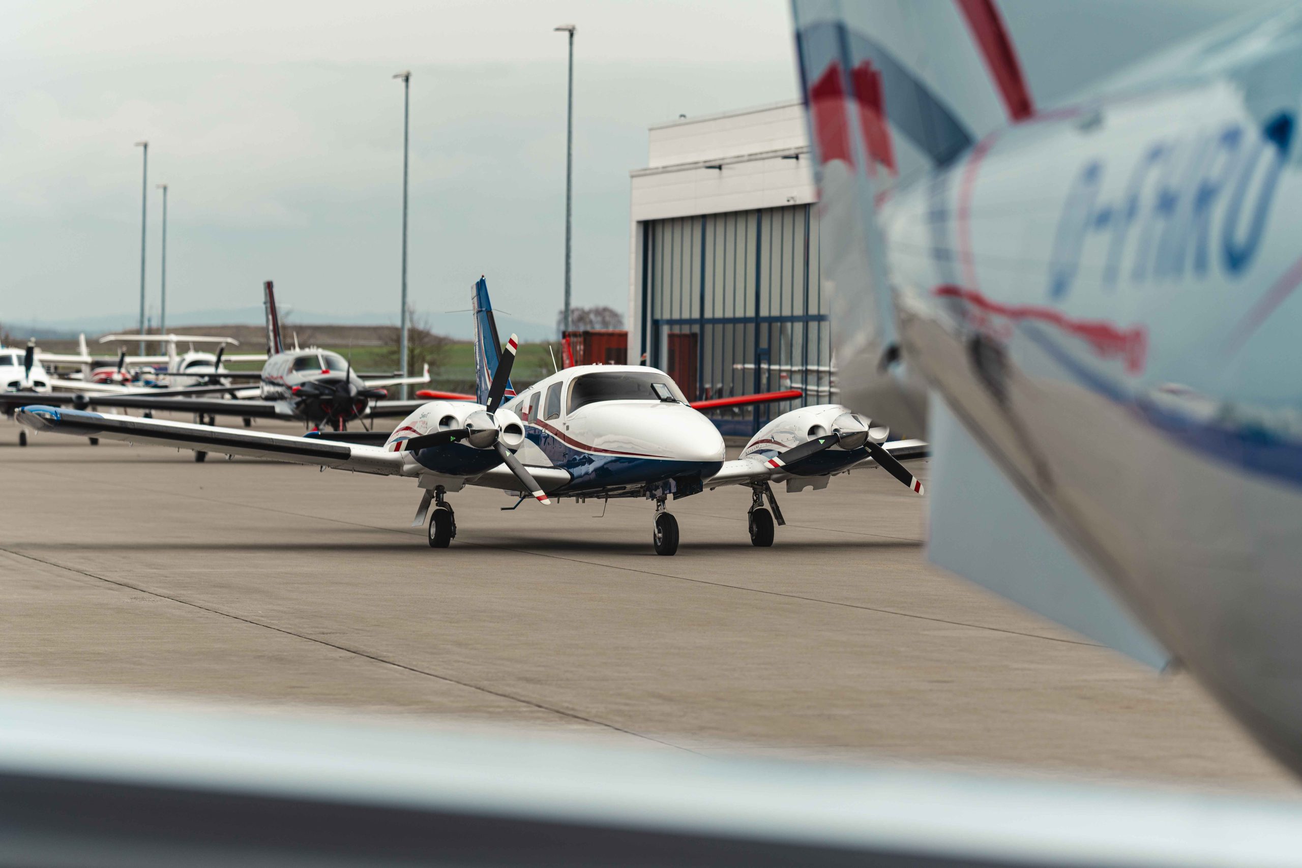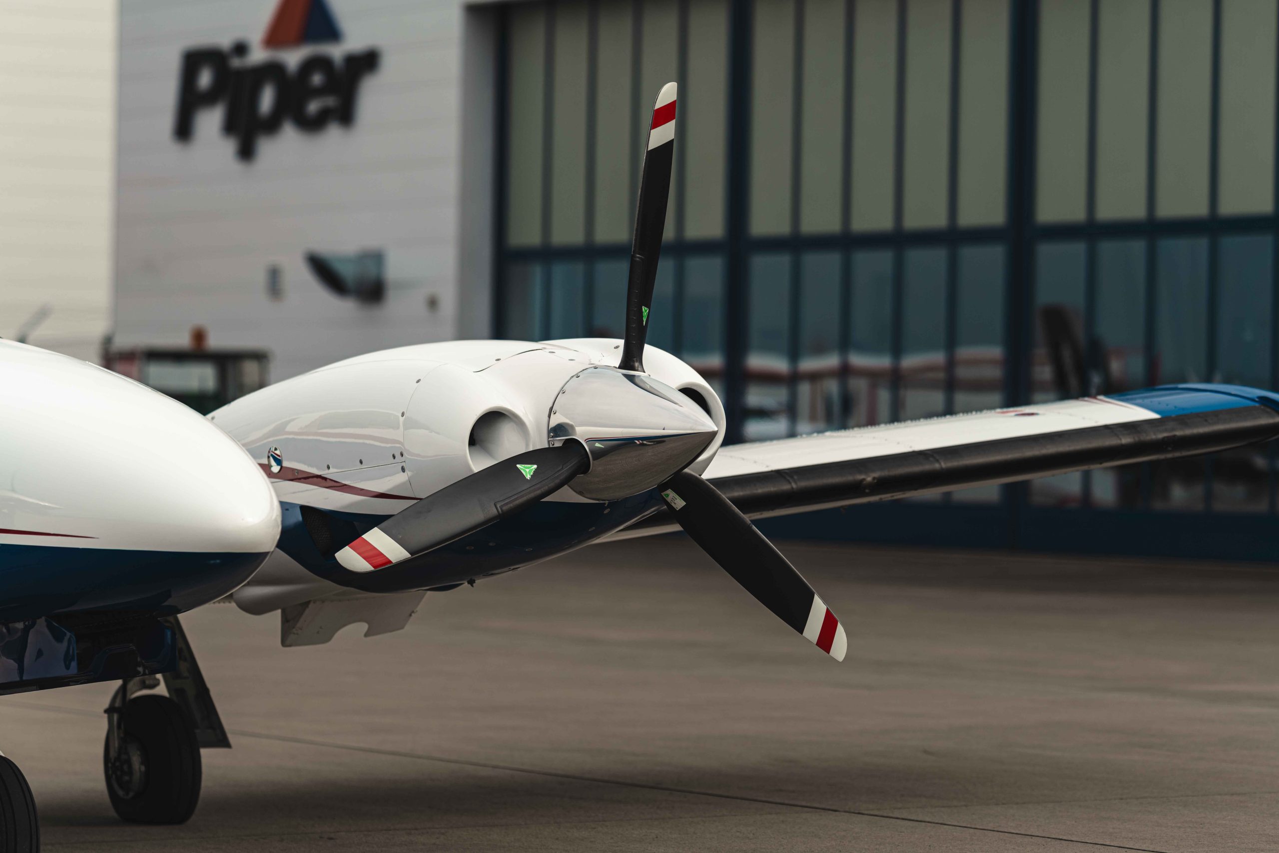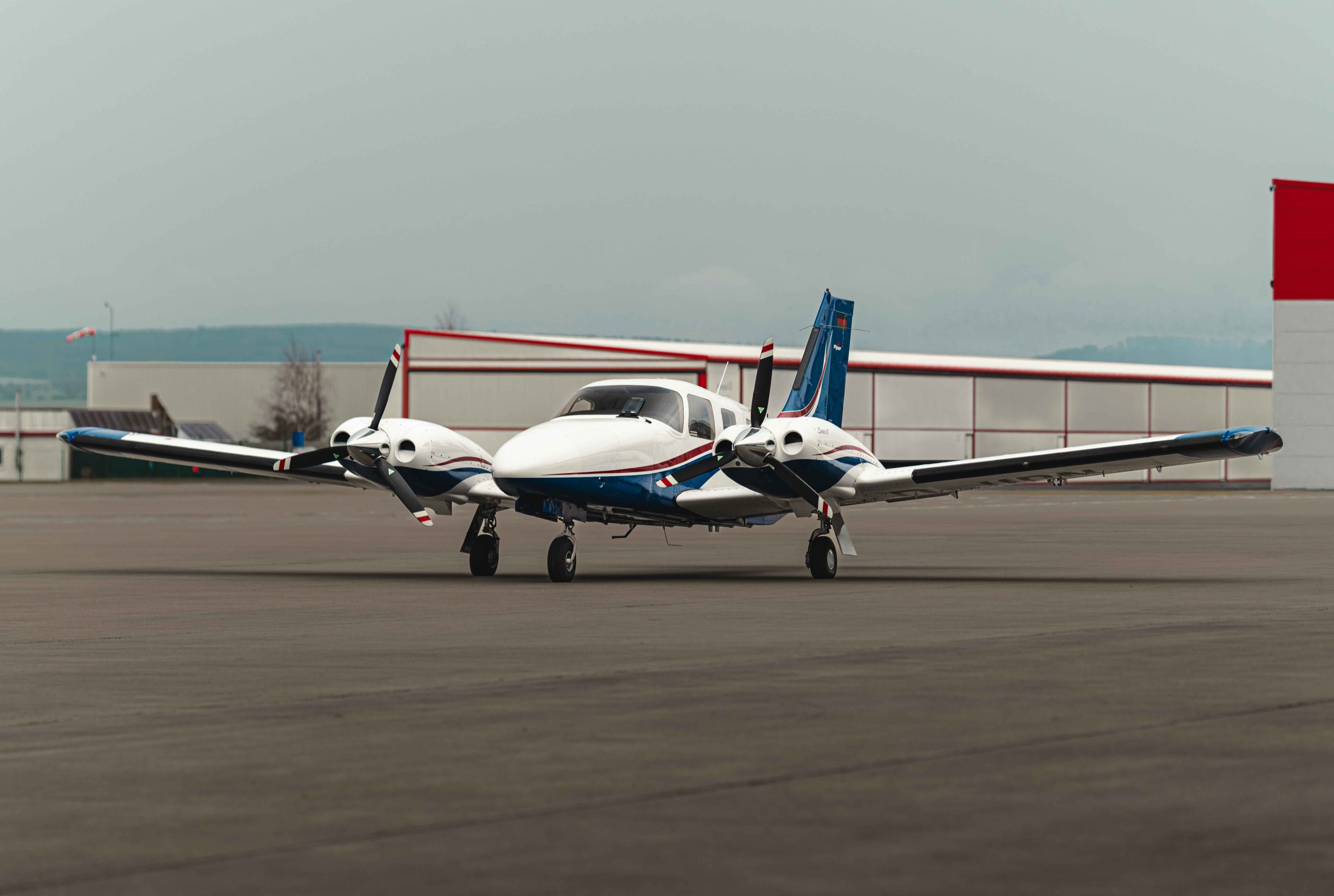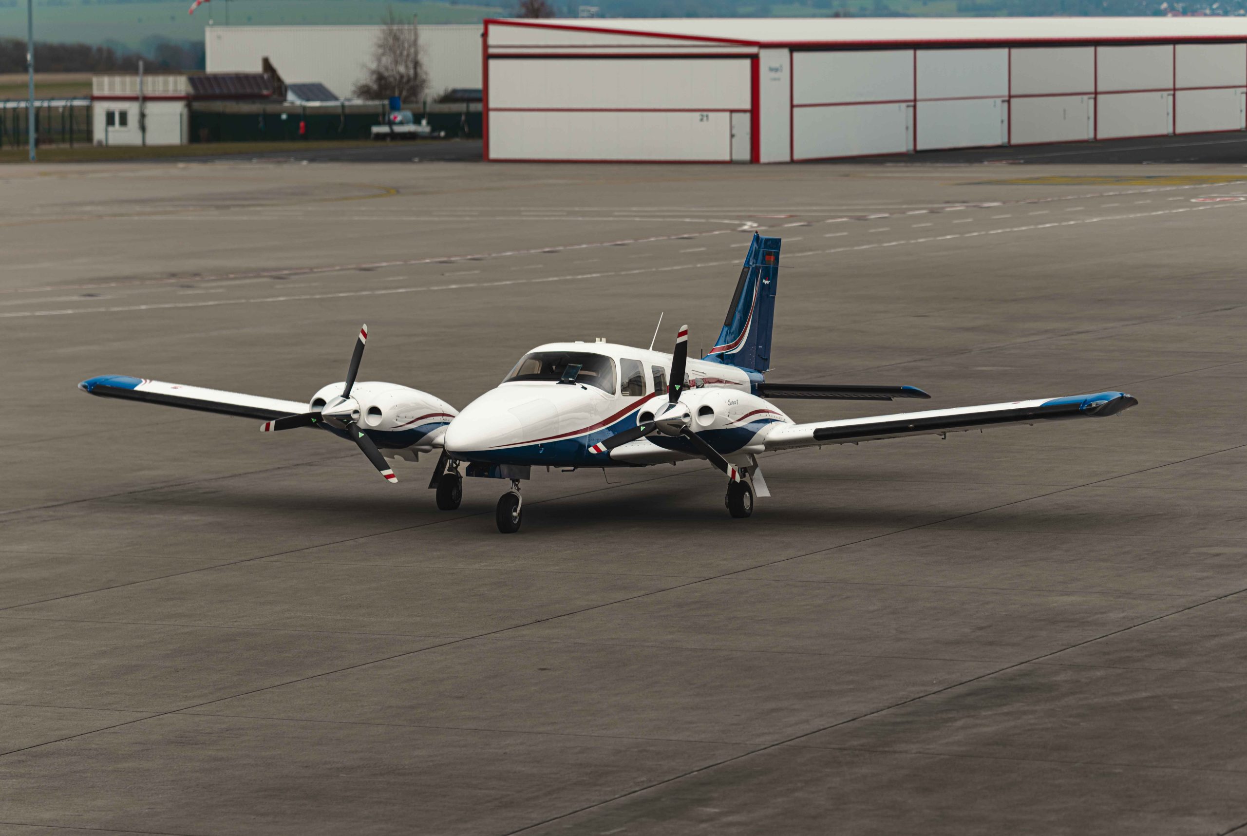 Die Lackierung in Matterhorn White / Royal Blue mit Deep Red Akzentstreifen verleiht dem Flugzeug eine elegante und zugleich markante Erscheinung. Das Interieur in Steel-farbenem Leder unterstreicht den hochwertigen und professionellen Charakter dieser späten Seneca V Generation.