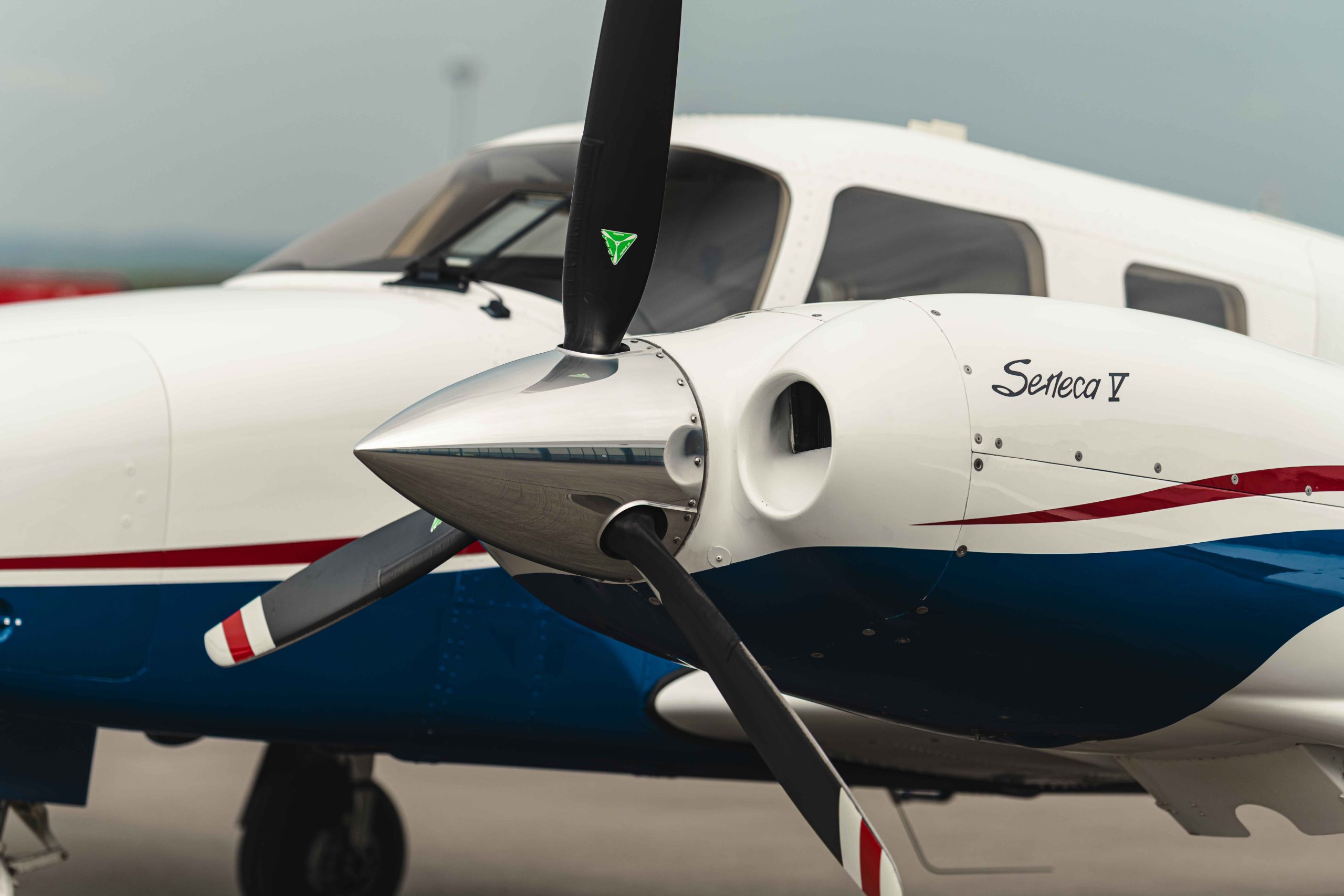 Angetrieben wird die Seneca V von einem Continental TSIO-360-RB5B (rechter Motor) sowie einem Continental LTSIO-360-RB5B (linker Motor) – beide turboaufgeladen. Aufgrund des Alters von 13 Jahren haben die Motoren die kalenderbasierte TBO-Grenze von 12 Jahren erreicht und werden daher aktuell on condition betrieben.